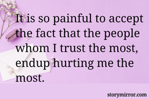 It is so painful to accept the fact that the people whom I trust the most, endup hurting me the most.