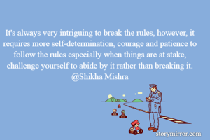 It's always very intriguing to break the rules, however, it requires more self-determination, courage and patience to follow the rules especially when things are at stake, challenge yourself to abide by it rather than breaking it. @Shikha Mishra