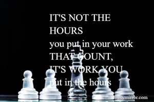 IT'S NOT THE HOURS you put in your work THAT COUNT, IT'S WORK YOU put in the hours