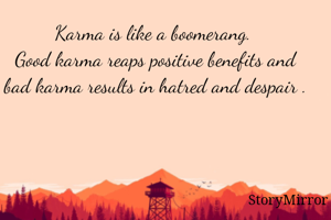 Karma is like a boomerang. Good karma reaps positive benefits and bad karma results in hatred and despair .