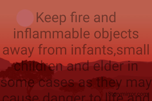 Keep fire and inflammable objects away from infants,small children and elder in some cases as they may cause danger to life and property