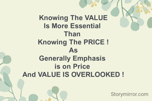 Knowing The VALUE Is More Essential Than Knowing The PRICE ! As Generally Emphasis is on Price And VALUE IS OVERLOOKED !