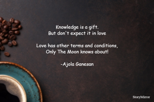 Knowledge is a gift. But don't expect it in love Love has other terms and conditions, Only The Moon knows about! -Ajola Ganesan