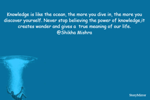 Knowledge is like the ocean, the more you dive in, the more you discover yourself. Never stop believing the power of knowledge,it creates wonder and gives a true meaning of our life. @Shikha Mishra