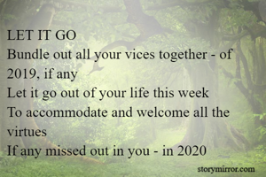 LET IT GO Bundle out all your vices together - of 2019, if any Let it go out of your life this week To accommodate and welcome all the virtues If any missed out in you - in 2020