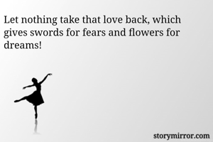 Let nothing take that love back, which gives swords for fears and flowers for dreams!