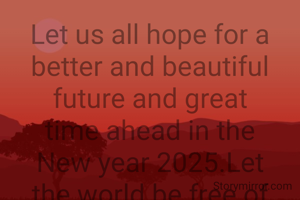 Let us all hope for a better and beautiful future and great time ahead in the New year 2025.Let the world be free of greed,apathy,wars and poverty and let us foresee great great days ahead