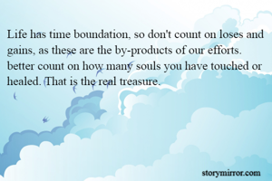 Life has time boundation, so don't count on loses and gains, as these are the by-products of our efforts. better count on how many souls you have touched or healed. That is the real treasure.