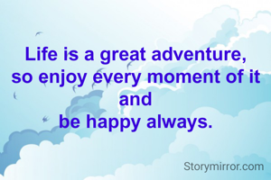 Life is a great adventure, so enjoy every moment of it and be happy always.