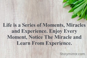 Life is a Series of Moments, Miracles and Experience. Enjoy Every Moment, Notice The Miracle and Learn From Experience.