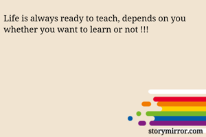Life is always ready to teach, depends on you whether you want to learn or not !!!