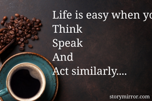 Life is easy when you Think Speak And Act similarly....