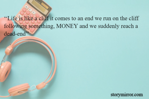 ‘‘Life is like a cliff it comes to an end we run on the cliff following something, MONEY and we suddenly reach a dead-end’’