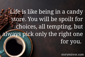 Life is like being in a candy store. You will be spoilt for choices, all tempting, but always pick only the right one for you.