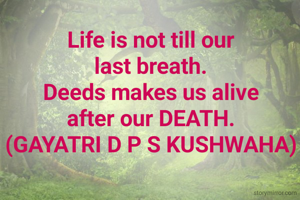 Life is not till our last breath. Deeds makes us alive after our DEATH. (GAYATRI D P S KUSHWAHA)