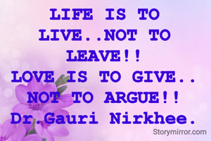 LIFE IS TO LIVE..NOT TO LEAVE!! LOVE IS TO GIVE.. NOT TO ARGUE!! Dr.Gauri Nirkhee.
