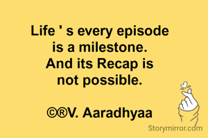 Life ' s every episode is a milestone. And its Recap is not possible. ©®V. Aaradhyaa