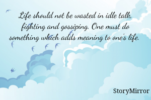 Life should not be wasted in idle talk, fighting and gossiping. One must do something which adds meaning to one's life.