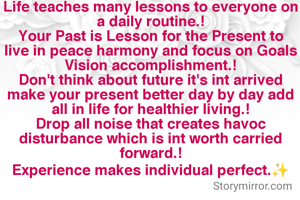 Your Past is Lesson for the Present to live in peace harmony and focus on Goals Vision accomplishment.!