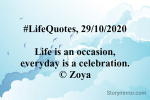 #LifeQuotes, 29/10/2020 Life is an occasion, everyday is a celebration. © Zoya
