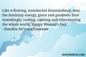 Like a flowing, translucent fountainhead, may the feminine energy, grace and goodness flow unendingly, cooling, calming and rejuvenating the whole world. Happy Women's Day. - Nandita De nee Chatterjee