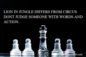 LION IN JUNGLE DIFFERS FROM CIRCUS DONT JUDGE SOMEONE WITH WORDS AND ACTION.