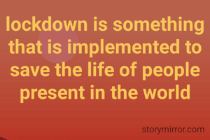 lockdown is something that is implemented to save the life of people present in the world