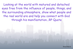 Looking at the world with matured and detached eyes free from the influence of people, things, and the surrounding atmosphere, show what people and the real world are and help you connect with God through his manifestation...RP Quote