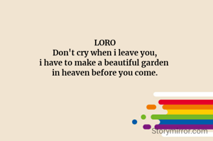 LORO Don't cry when i leave you, i have to make a beautiful garden in heaven before you come.