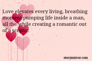 Love elevates every living, breathing moment pumping life inside a man, all the while creating a romantic out of a sceptic.