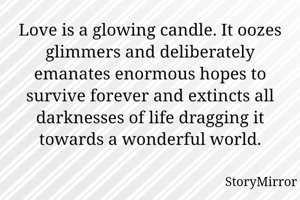 Love is a glowing candle. It oozes glimmers and deliberately emanates enormous hopes to survive forever and extincts all darknesses of life dragging it towards a wonderful world.