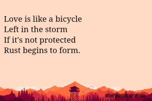 Love is like a bicycle Left in the storm If it's not protected Rust begins to form.
