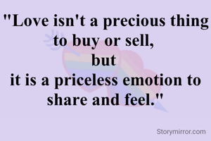 "Love isn't a precious thing to buy or sell, but it is a priceless emotion to share and feel."