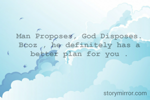Man Proposes, God Disposes. Bcoz , he definitely has a better plan for you .