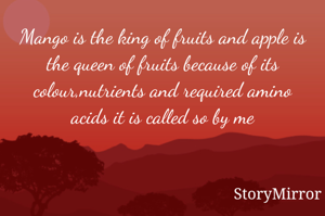 Mango is the king of fruits and apple is the queen of fruits because of its colour,nutrients and required amino acids it is called so by me