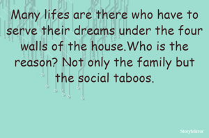 Many lifes are there who have to serve their dreams under the four walls of the house.Who is the reason? Not only the family but the social taboos.