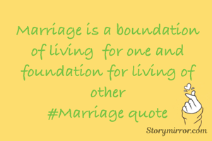 Marriage is a boundation of living for one and foundation for living of other #Marriage quote