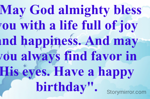"May God almighty bless you with a life full of joy and happiness. And may you always find favor in His eyes. Have a happy birthday".