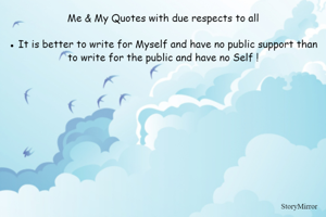 Me & My Quotes with due respects to all ● It is better to write for Myself and have no public support than to write for the public and have no Self !