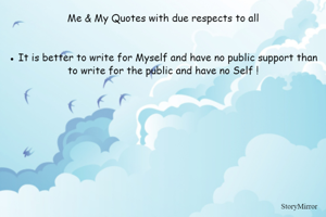Me & My Quotes with due respects to all ● It is better to write for Myself and have no public support than to write for the public and have no Self !