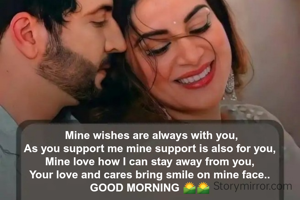 Mine wishes are always with you, As you support me mine support is also for you, Mine love how I can stay away from you, Your love and cares bring smile on mine face.. GOOD MORNING 🌄🌄