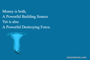Money is both, A Powerful Building Source Yet is also A Powerful Destroying Force.