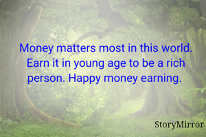 Money matters most in this world. Earn it in young age to be a rich person. Happy money earning.
