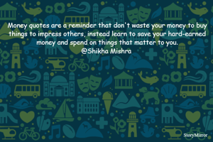 Money quotes are a reminder that don't waste your money to buy things to impress others, instead learn to save your hard-earned money and spend on things that matter to you. @Shikha Mishra