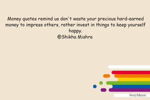 Money quotes remind us don't waste your precious hard-earned money to impress others, rather invest in things to keep yourself happy. @Shikha Mishra