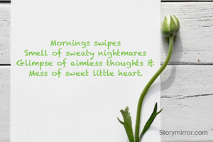 Mornings swipes Smell of sweaty nightmares Glimpse of aimless thoughts & Mess of sweet little heart.