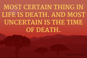 MOST CERTAIN THING IN LIFE IS DEATH. AND MOST UNCERTAIN IS THE TIME OF DEATH.