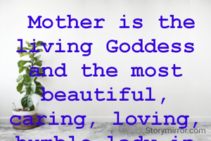Mother is the living Goddess and the most beautiful, caring, loving, humble lady in the universe.