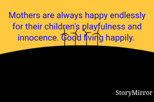 Mothers are always happy endlessly for their children's playfulness and innocence. Good living happily.