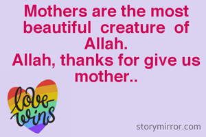 Mothers are the most beautiful creature of Allah. Allah, thanks for give us mother..